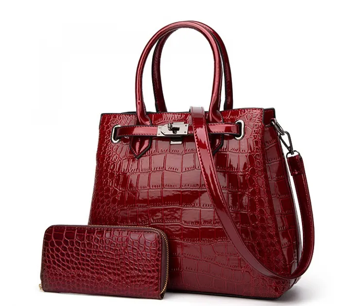 Spring patent leather shoulder bag 2pcs set for women